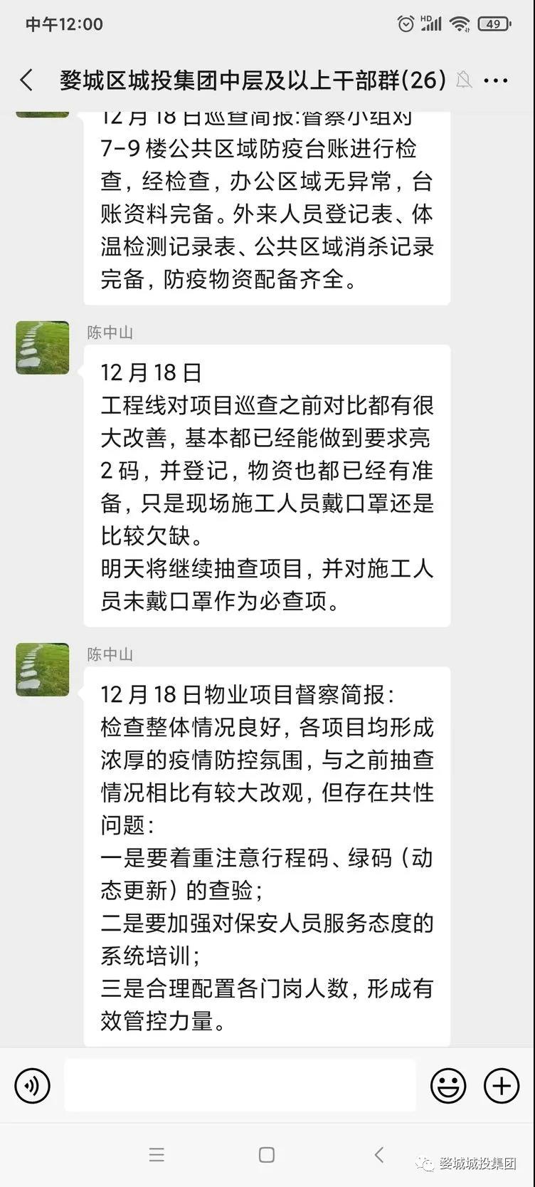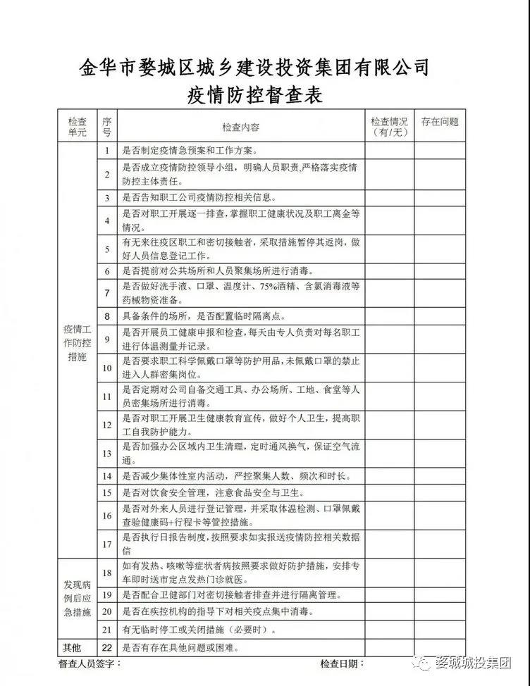 一是由集團(tuán)疫情防控工作領(lǐng)導(dǎo)小組常務(wù)副組長(zhǎng)陳中山牽頭成立督導(dǎo)檢查組,下設(shè)4個(gè)督查小組,督導(dǎo)小組成員放棄周末休息時(shí)間、不舍晝夜分赴在建工地、物業(yè)小區(qū)、文旅項(xiàng)目、高速路口、醫(yī)院門(mén)崗等重點(diǎn)區(qū)域督導(dǎo)檢查集團(tuán)疫情防控工作落實(shí)情況,重點(diǎn)督導(dǎo)檢查領(lǐng)導(dǎo)批示指示要求、重點(diǎn)工作、防控措施和應(yīng)急預(yù)案的落實(shí)情況,認(rèn)真組織核查并及時(shí)報(bào)送防控核查信息。二是完善修訂《集團(tuán)疫情防控規(guī)范及工作制度》、《集團(tuán)疫情防控督查表》,明確工作職責(zé)、強(qiáng)化規(guī)范管理,確保督查效率。三是督促建立健全疫情防控臺(tái)賬,明確督查重點(diǎn),狠抓任務(wù)落實(shí)。